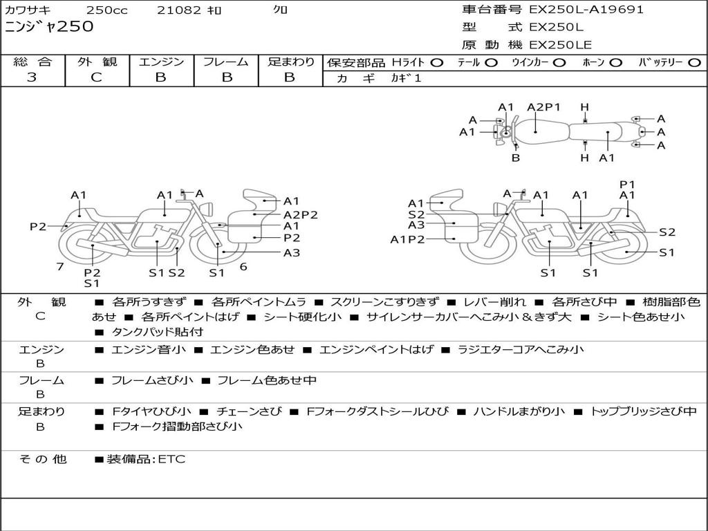 | Номер рамы / VIN | EX250L-A19691 |