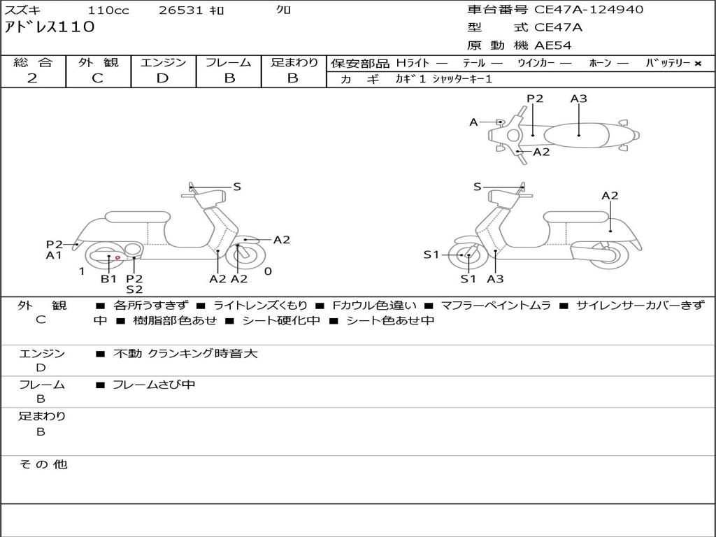 | Номер рамы / VIN | CE47A-124940 |