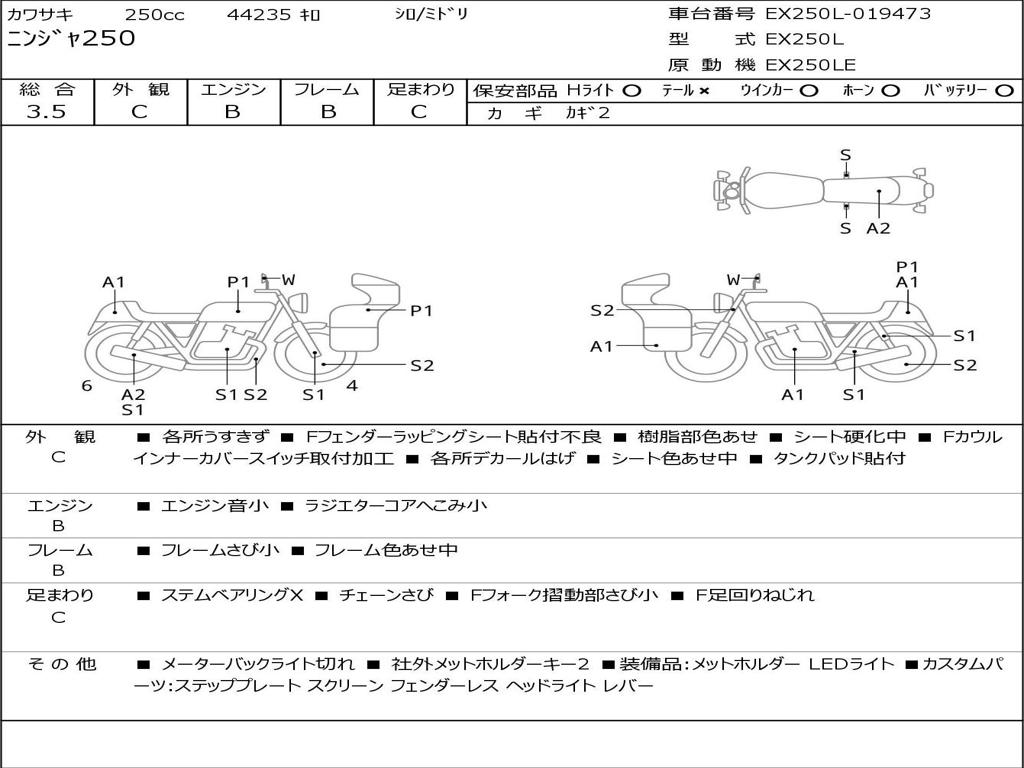 | Номер рамы / VIN | EX250L-019473 |