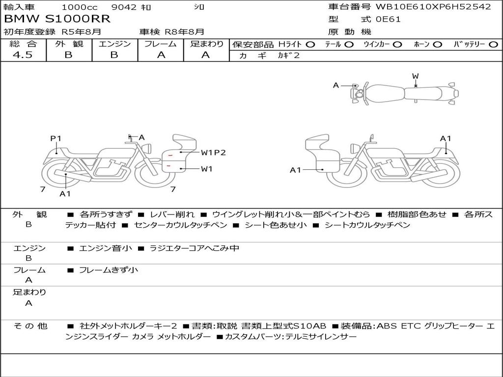 | Номер рамы / VIN | WB10E610XP6H52542 |