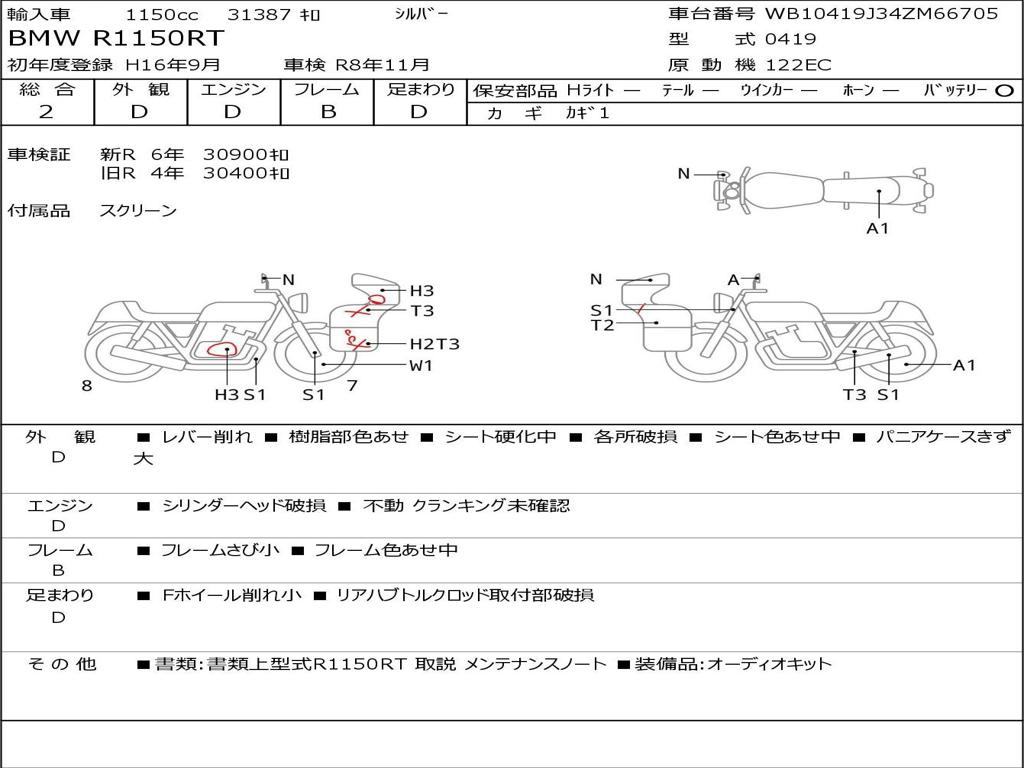 | Номер рамы / VIN | WB10419J34ZM66705 |