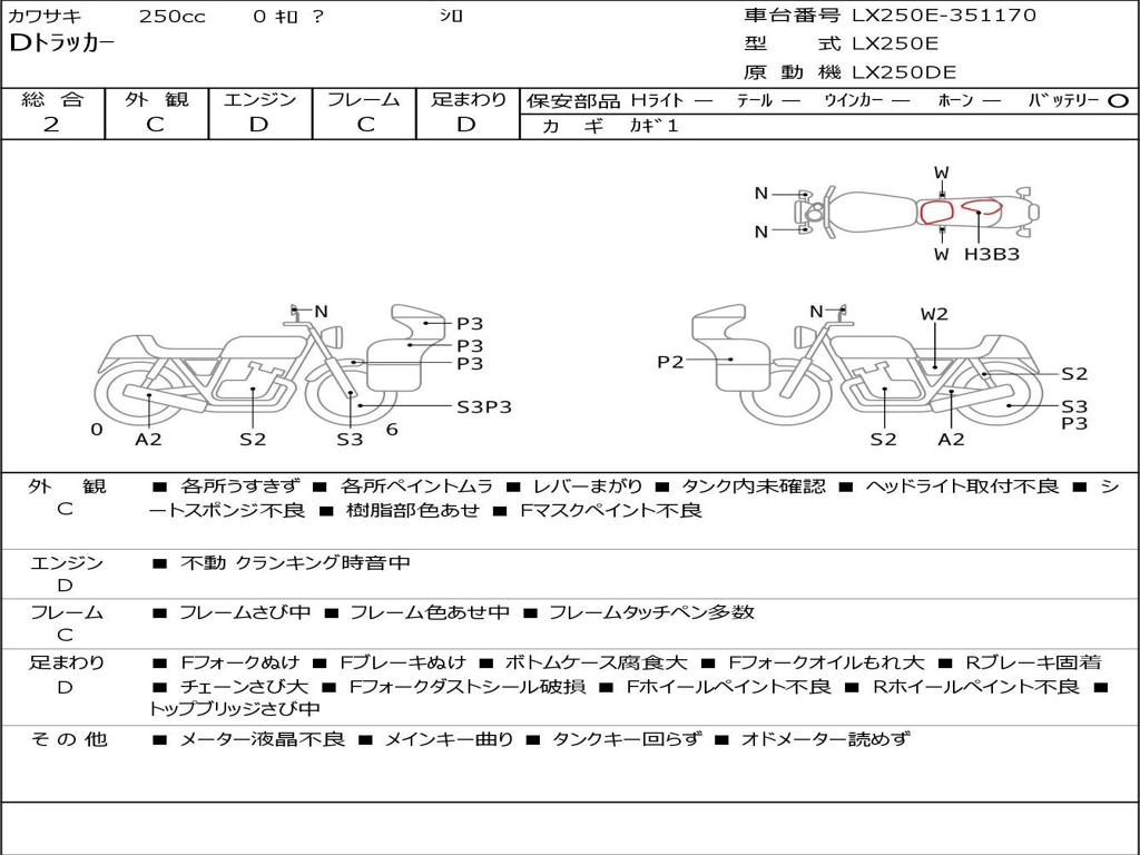 | Номер рамы / VIN | LX250E-351170 |