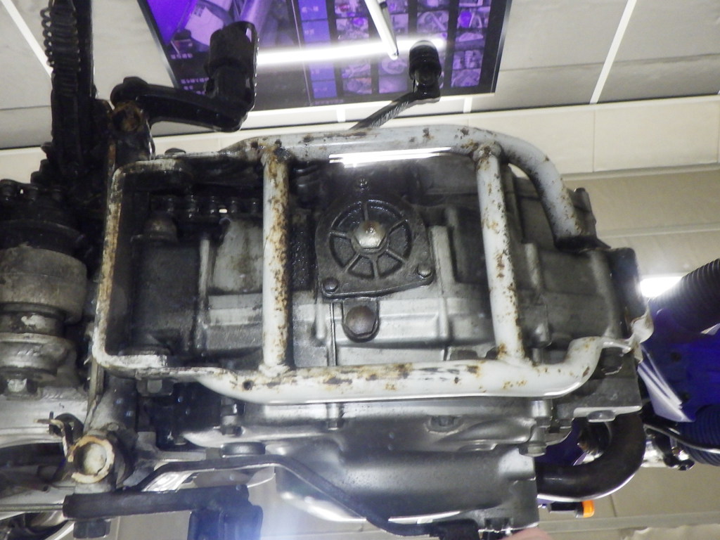 | потек масла | снизу <много> |
