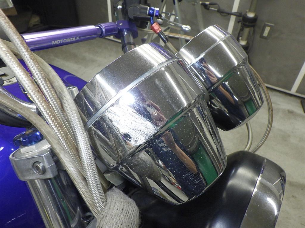 | внешняя часть вилки | следы коррозии <много>, полирован., потек масла, неисправен сальник |