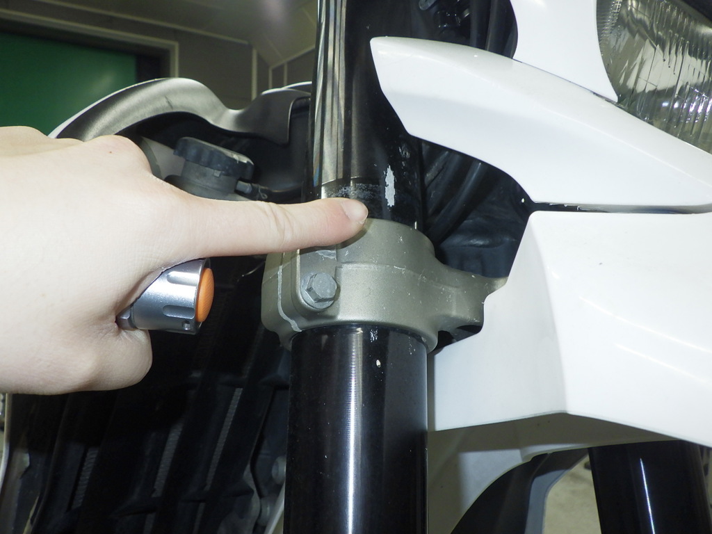 | внешняя часть вилки | царапины, следы коррозии, потек масла <много>, трещины |