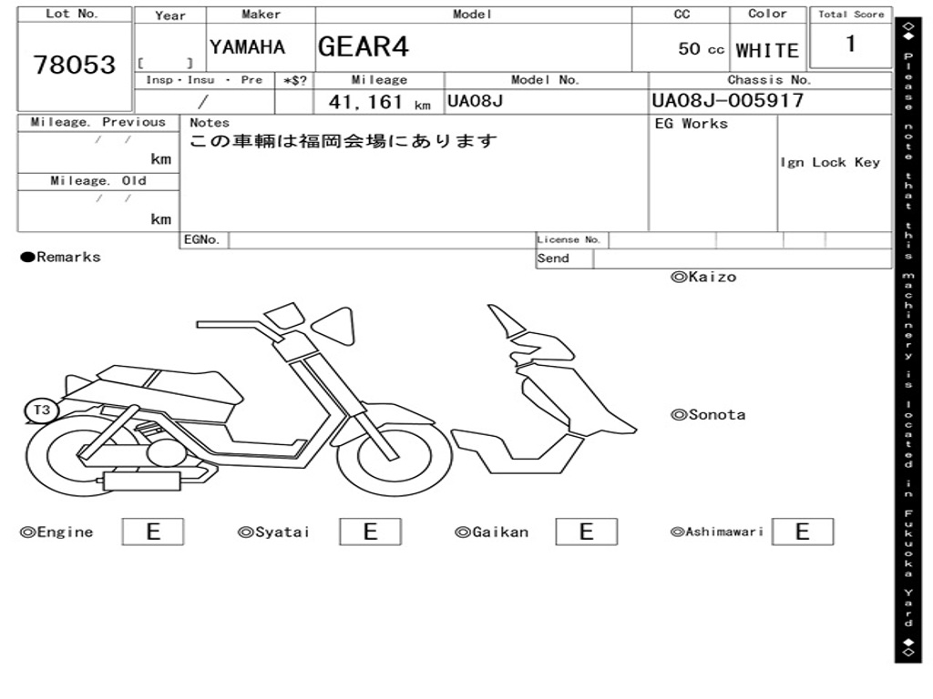 | Номер рамы / VIN | UA08J-005917 |