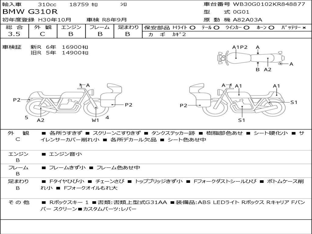| Номер рамы / VIN | WB30G0102KR848877 |