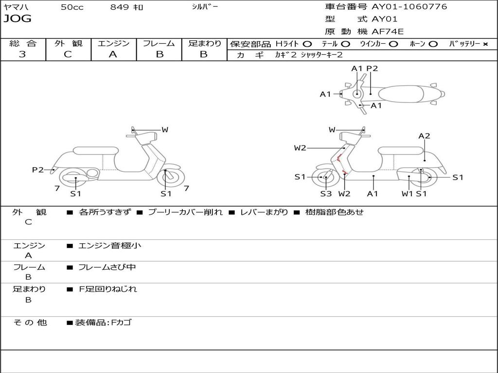 | Номер рамы / VIN | AY01-1060776 |