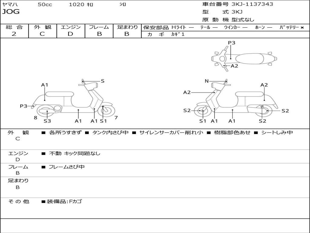 | Номер рамы / VIN | 3KJ-1137343 |