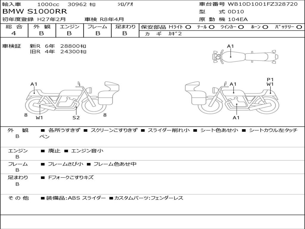 | Номер рамы / VIN | WB10D1001FZ328720 |