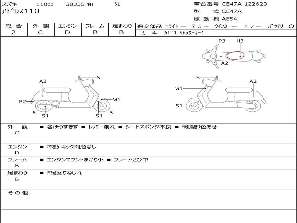 | Номер рамы / VIN | CE47A-122623 |