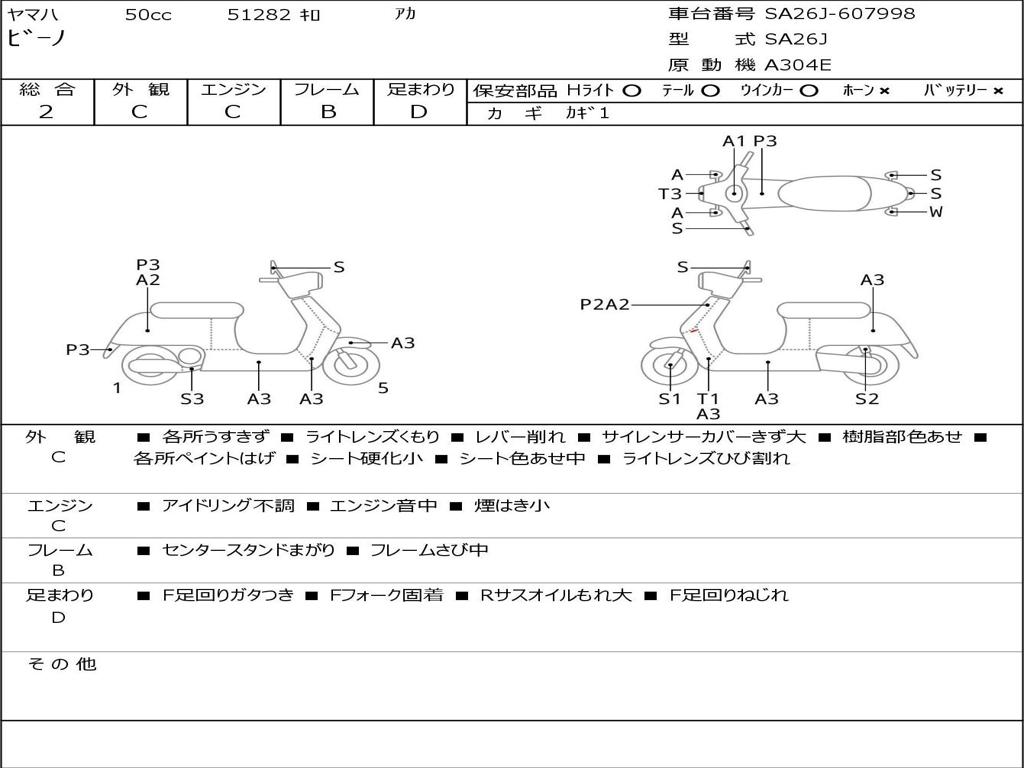 | Номер рамы / VIN | SA26J-607998 |