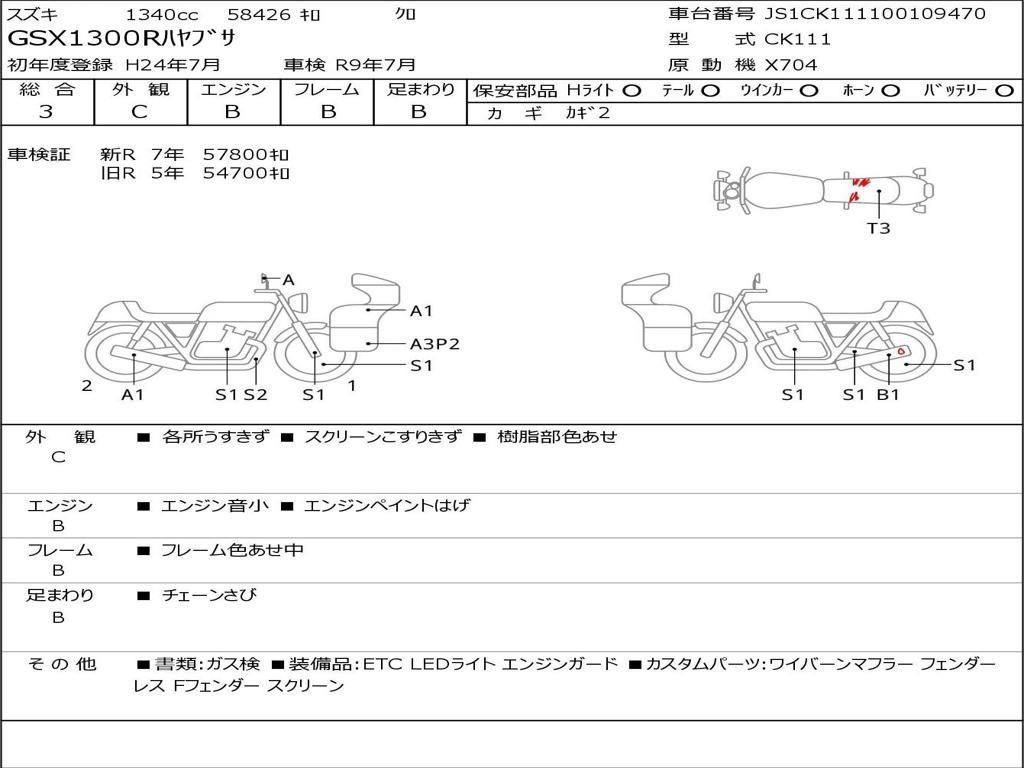 | Номер рамы / VIN | JS1CK111100109470 |