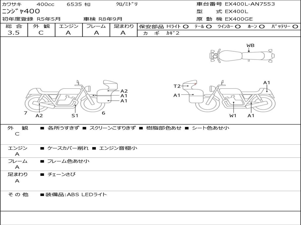 | Номер рамы / VIN | EX400L-AN7553 |