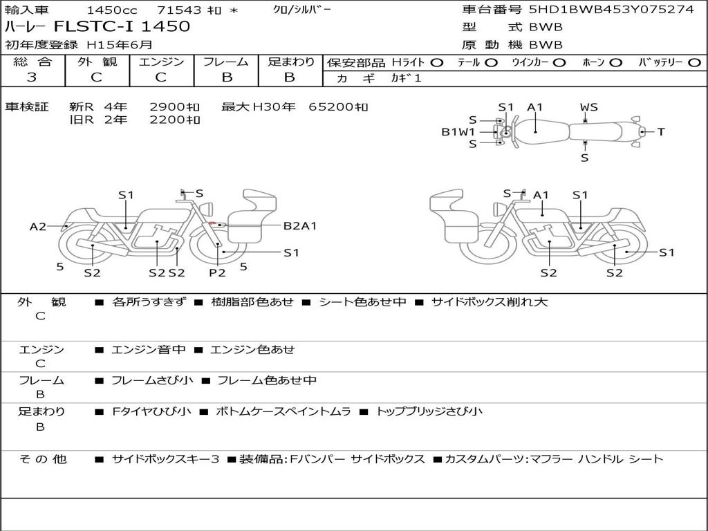 | Номер рамы / VIN | 5HD1BWB453Y075274 |