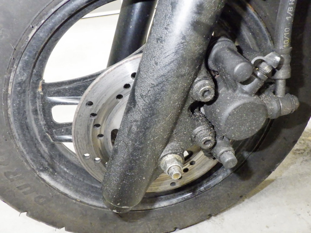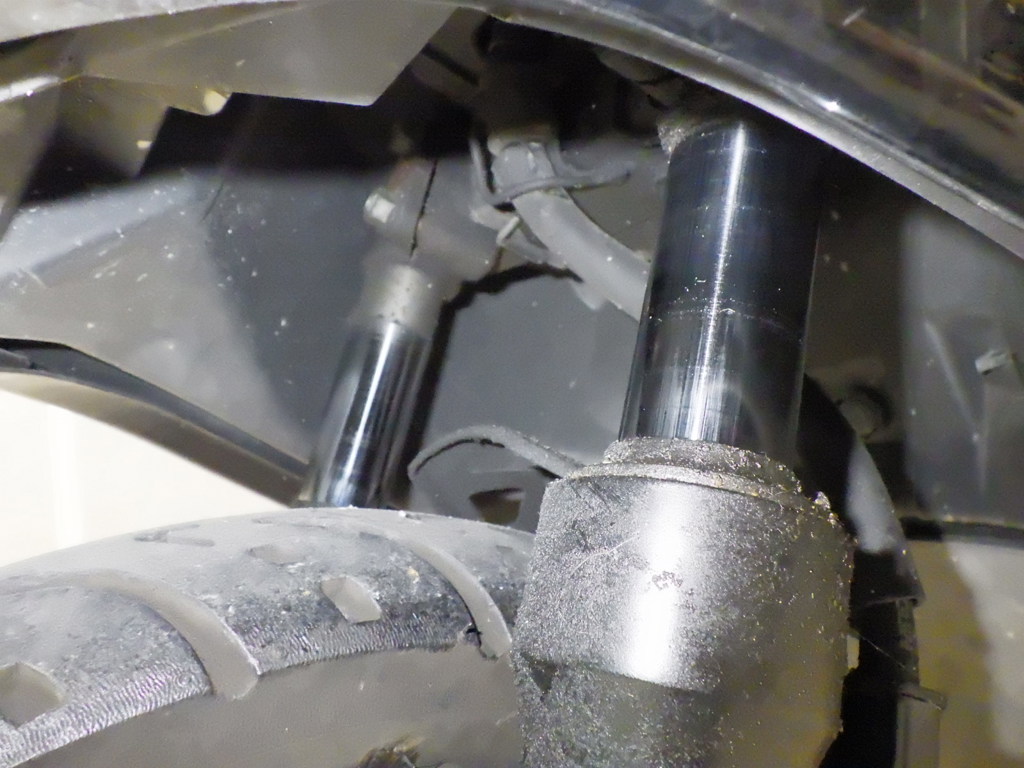 | внешняя часть вилки | потек масла <много>, слабый |