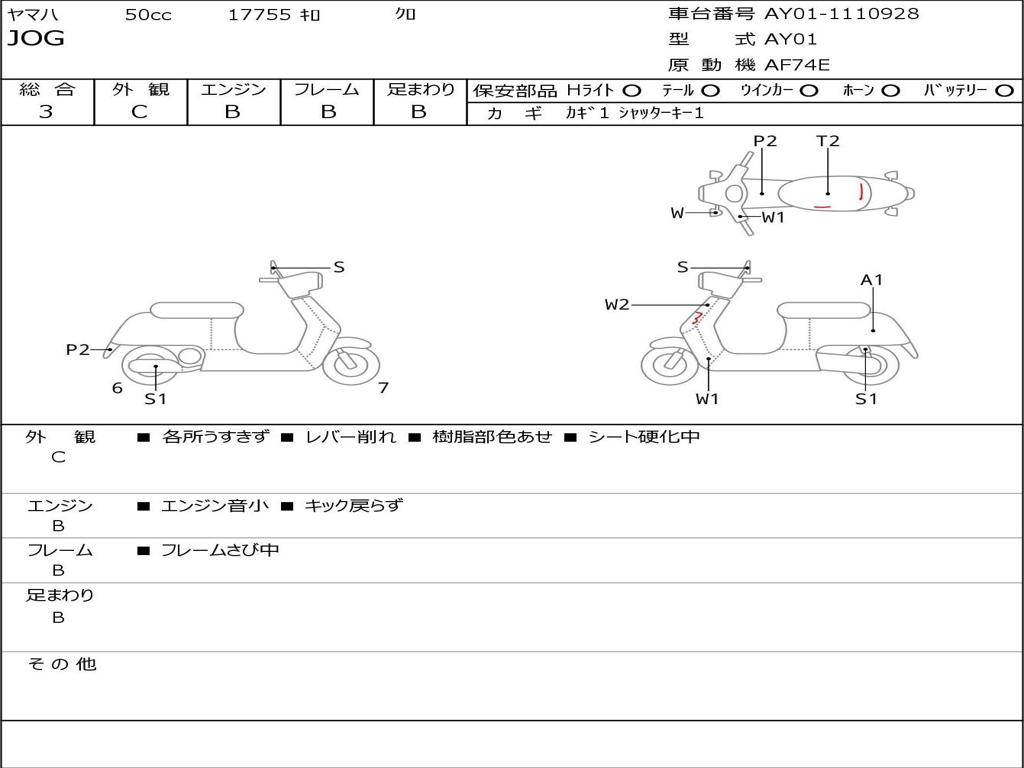 | Номер рамы / VIN | AY01-1110928 |