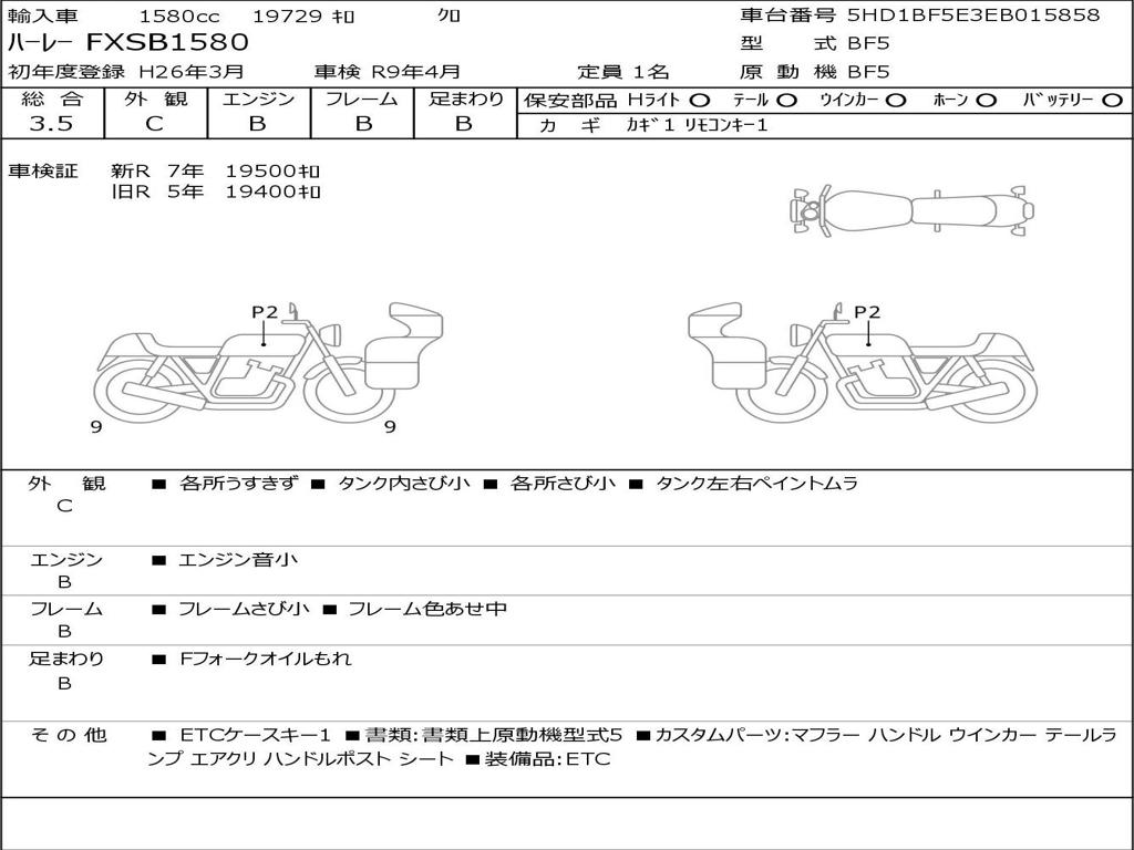 | Номер рамы / VIN | 5HD1BF5E3EB015858 |