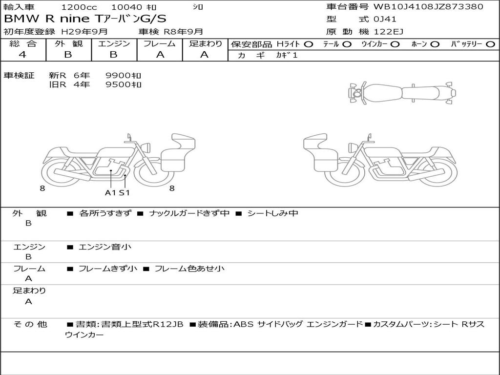 | Номер рамы / VIN | WB10J4108JZ873380 |
