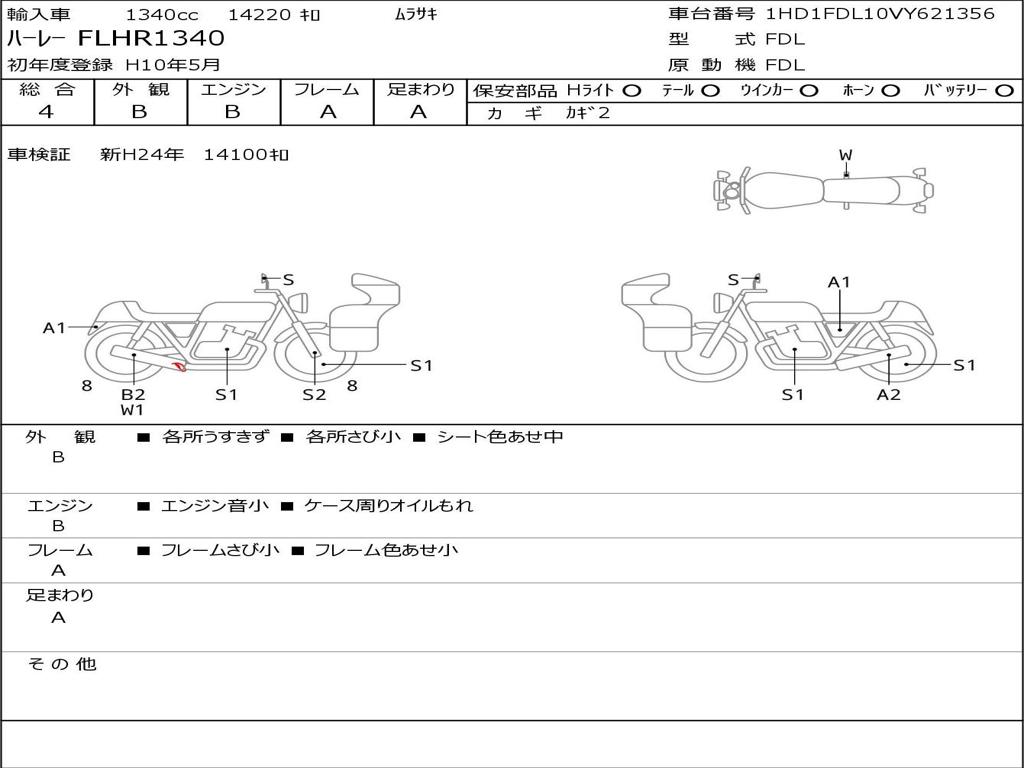 | Номер рамы / VIN | 1HD1FDL10VY621356 |