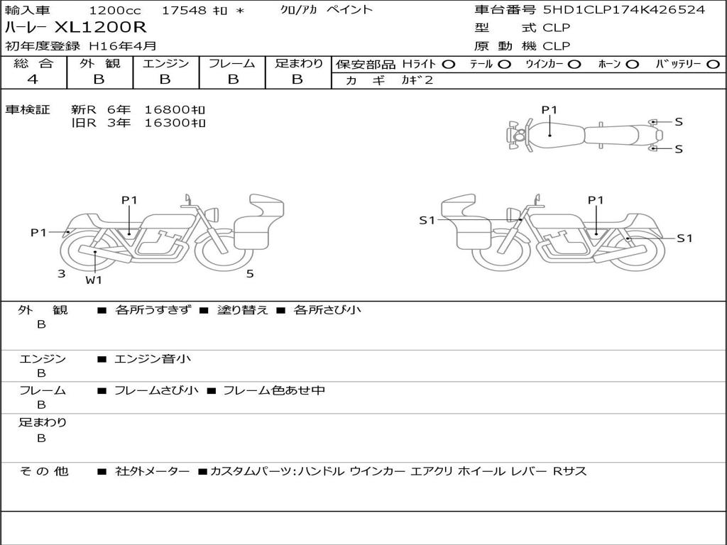 | Номер рамы / VIN | 5HD1CLP174K426524 |