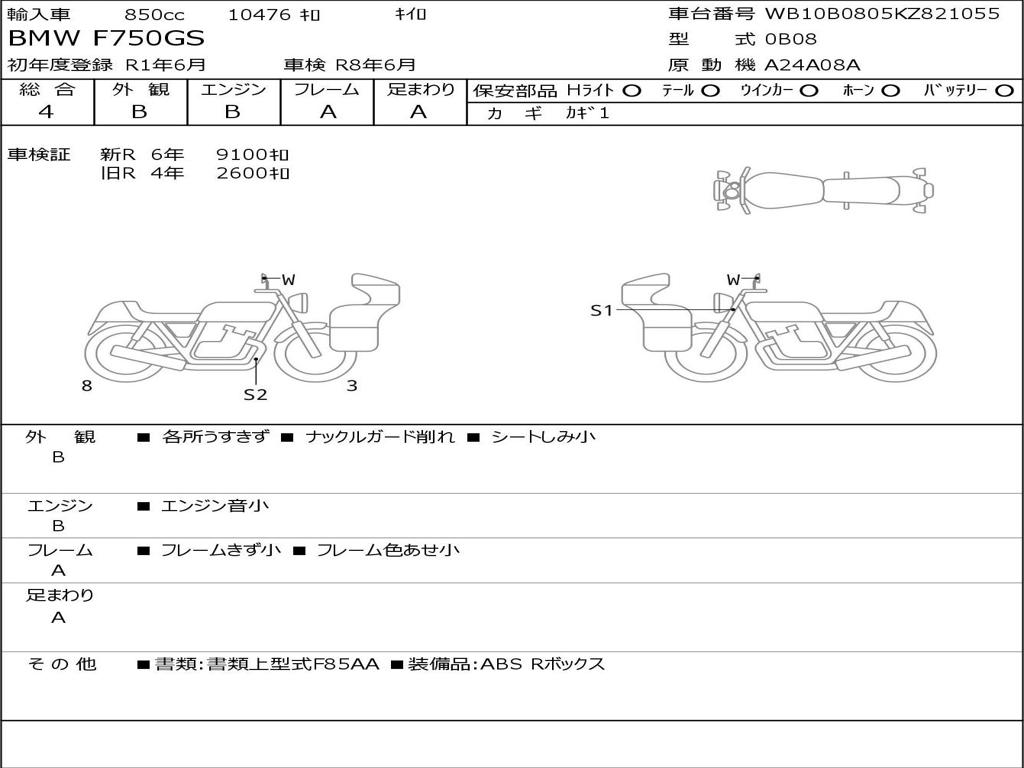 | Номер рамы / VIN | WB10B0805KZ821055 |