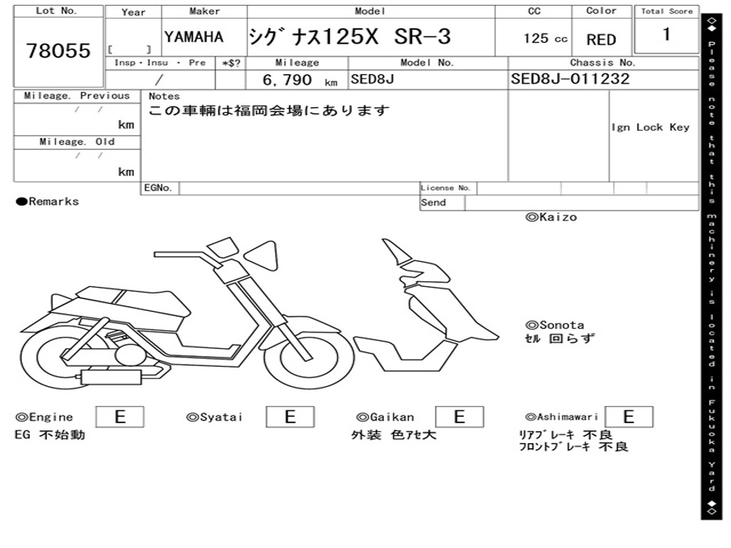 | Номер рамы / VIN | SED8J-011232 |