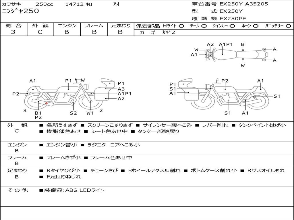 | Номер рамы / VIN | EX250Y-A35205 |