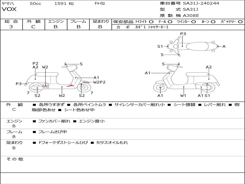 | Номер рамы / VIN | SA31J-240244 |