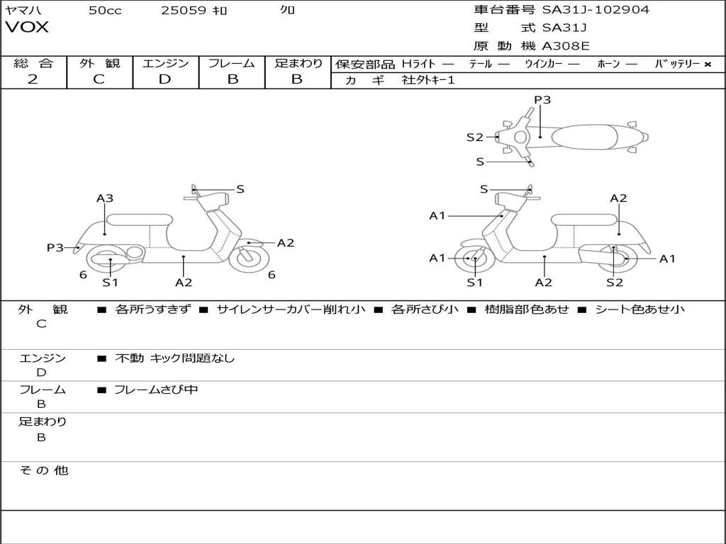 | Номер рамы / VIN | SA31J-102904 |