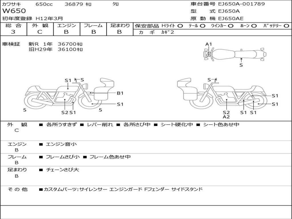 | Номер рамы / VIN | EJ650A-001789 |
