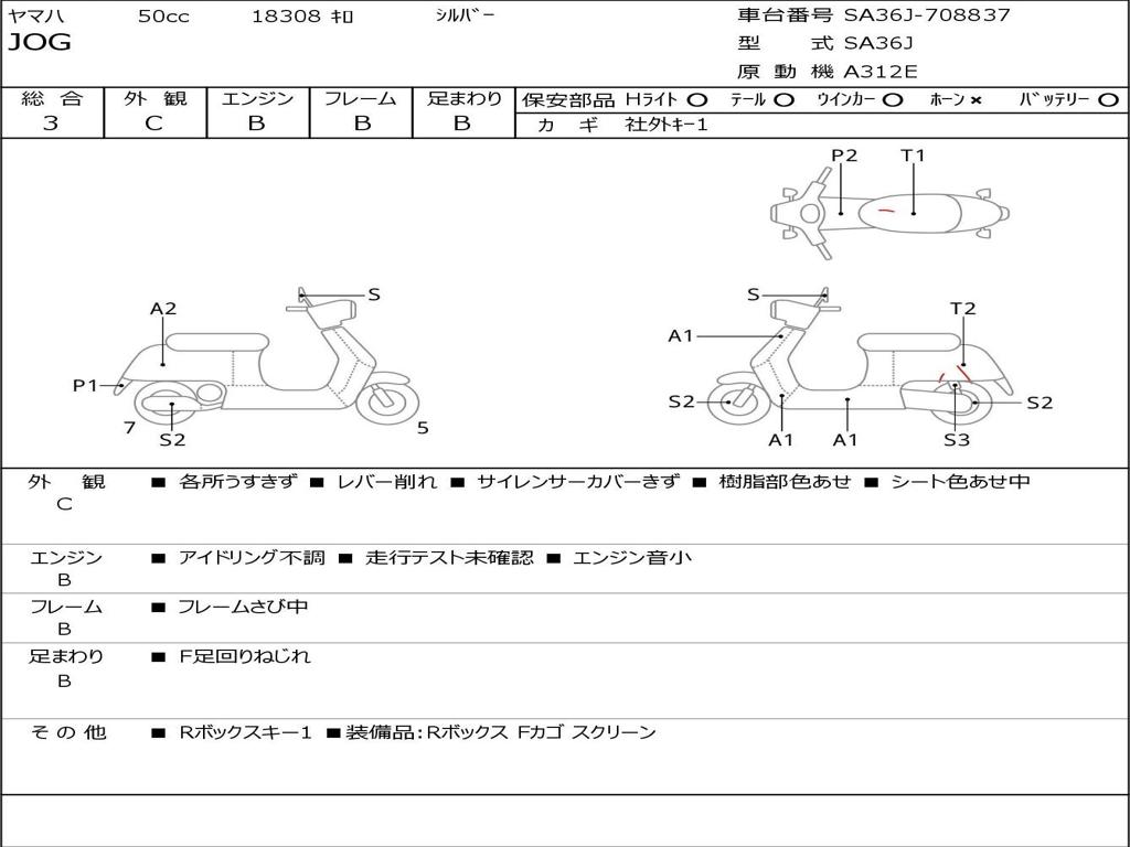 | Номер рамы / VIN | SA36J-708837 |