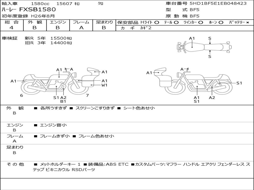 | Номер рамы / VIN | 5HD1BF5E1EB048423 |