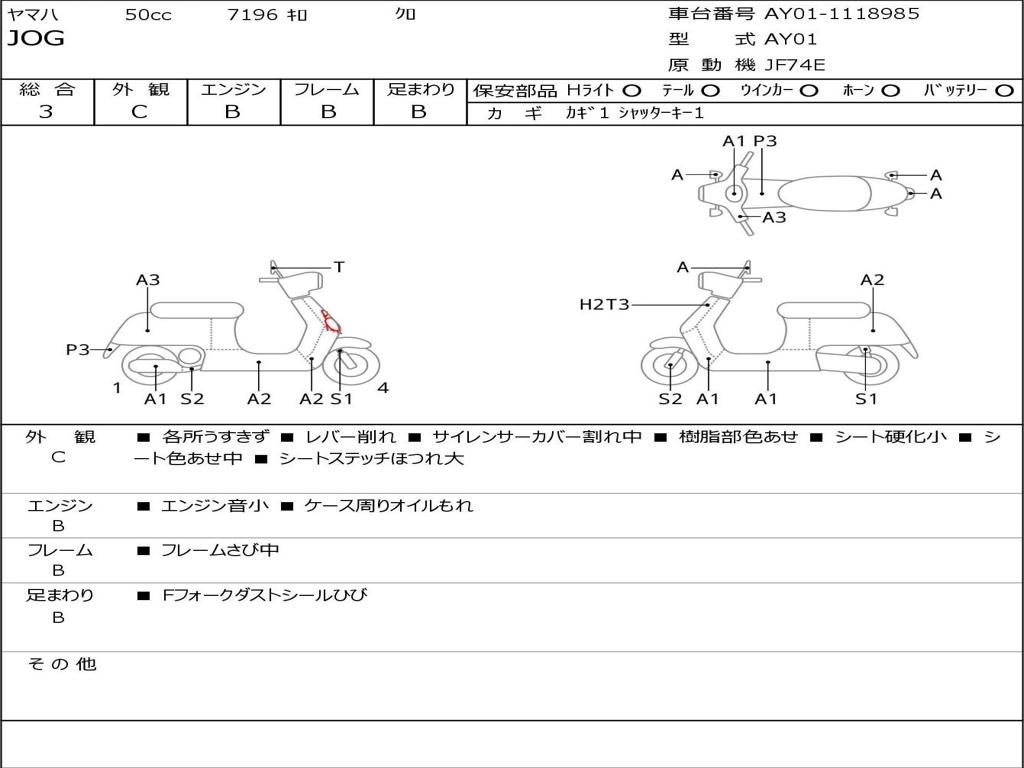 | Номер рамы / VIN | AY01-1118985 |