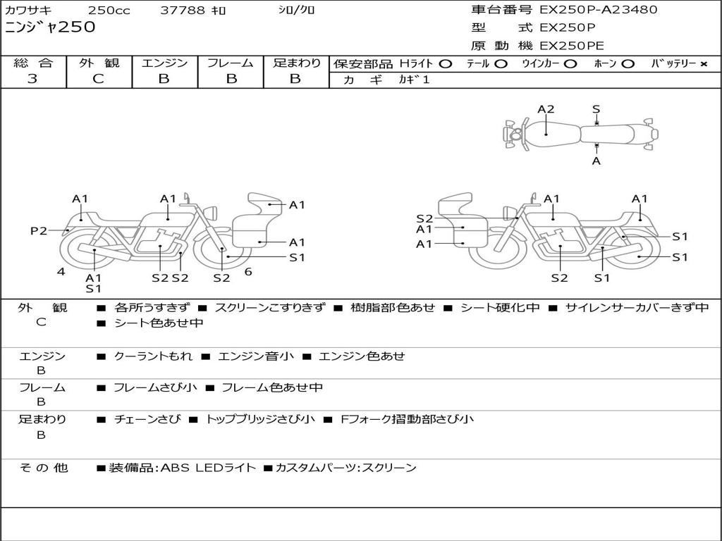 | Номер рамы / VIN | EX250P-A23480 |
