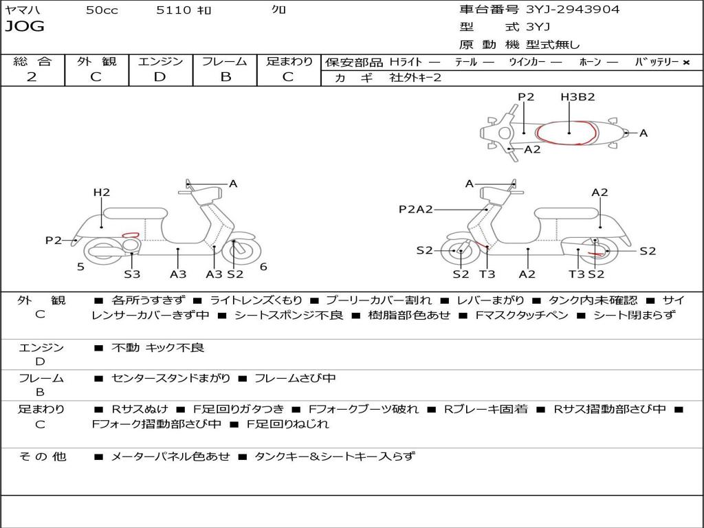 | Номер рамы / VIN | 3YJ-2943904 |