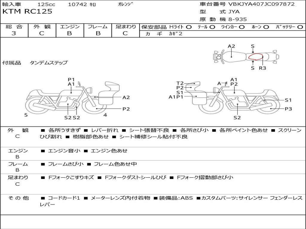 | Номер рамы / VIN | VBKJYA407JC097872 |