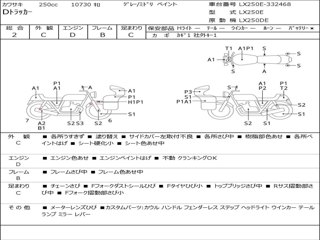 | Номер рамы / VIN | LX250E-332468 |