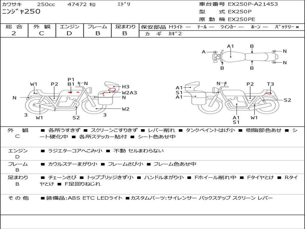 | Номер рамы / VIN | EX250P-A21453 |