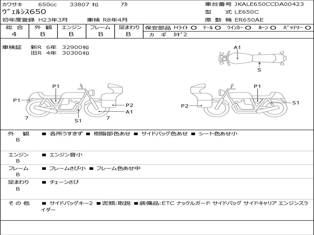 | Номер рамы / VIN | JKALE650CCDA00423 |
