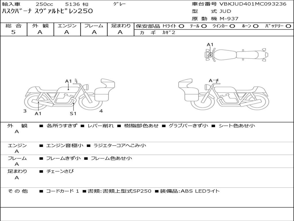 | Номер рамы / VIN | VBKJUD401MC093236 |