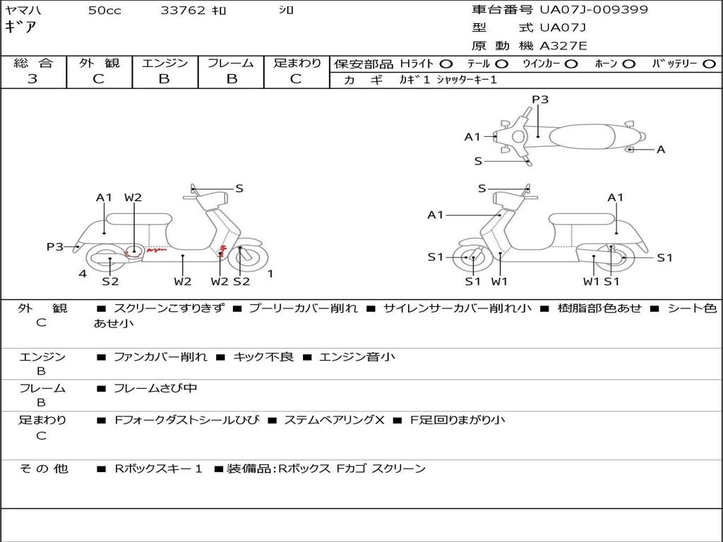 | Номер рамы / VIN | UA07J-009399 |