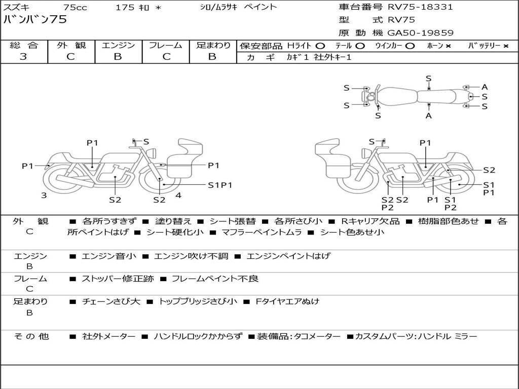 | Номер рамы / VIN | RV75-18331 |