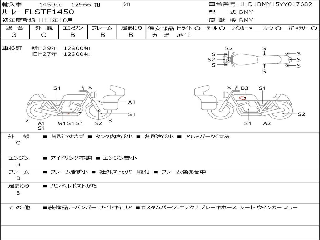 | Номер рамы / VIN | 1HD1BMY15YY017682 |
