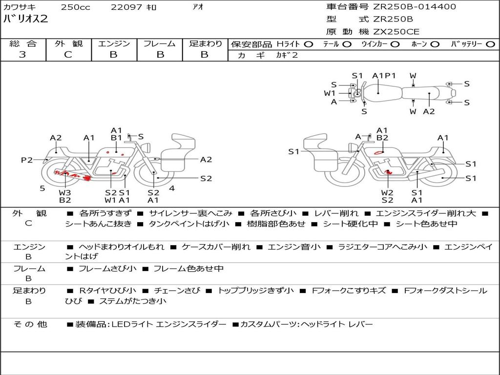 | Номер рамы / VIN | ZR250B-014400 |