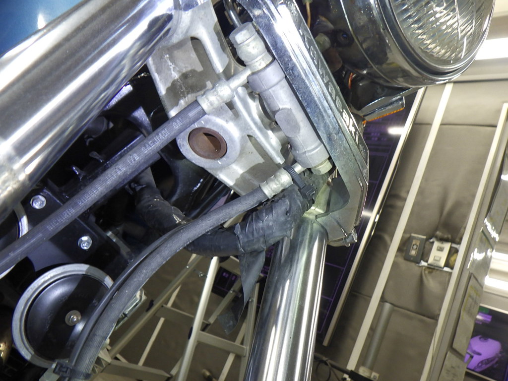 | внешняя часть вилки | царапины <много>, следы коррозии, потек масла |