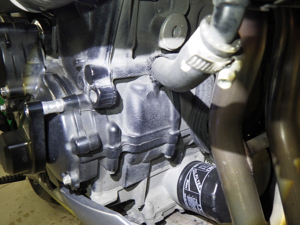 | потек масла | слева снизу <немного> |