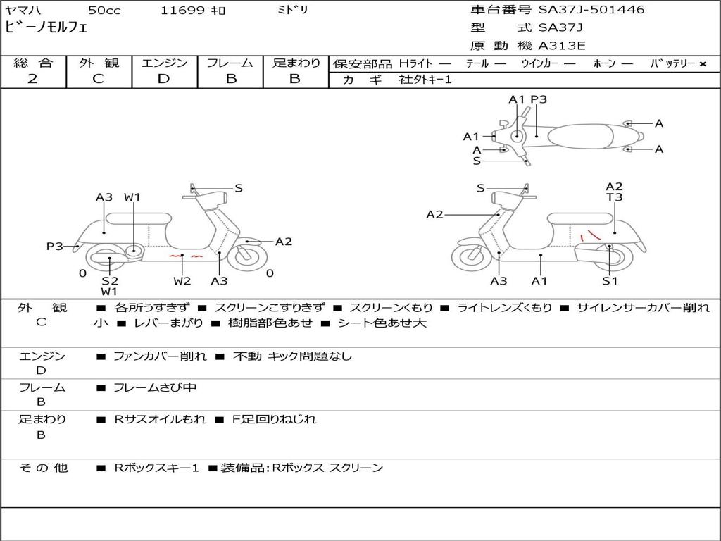 | Номер рамы / VIN | SA37J-501446 |