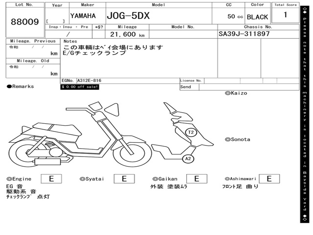| Номер рамы / VIN | SA39J-311897 |