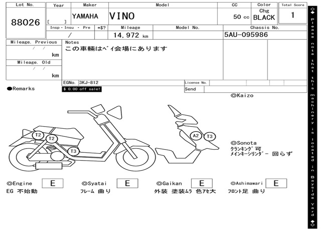 | Номер рамы / VIN | 5AU-095986 |